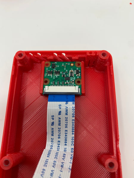 - Before you insert the camera into it's holder, double check that the ribbon cable on the camera board is seated properly (the ribbon cable we're referencing runs from the camera module with the integrated lens to the camera PCB, and is less than 1cm long).