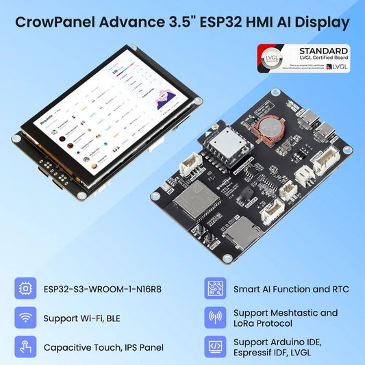 CrowPanel Advance 3.5" ESP32-S3 AI HMI Display for Meshtastic – 480x320 IPS Touch Screen with Case