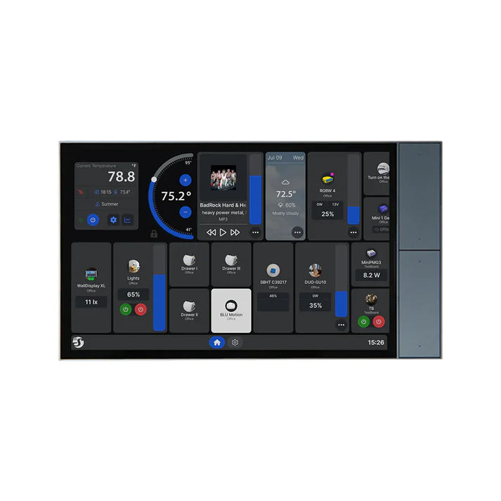 Smart home control panel with a 10.1” touch display, built-in relay switching and four customizable buttons. Installs in a standard electrical wall box and gives you full, easy control over your Shelly devices-ideal for houses, apartments, hotels, and commercial spaces. For non wall placement consider this 3D Printed Stand.