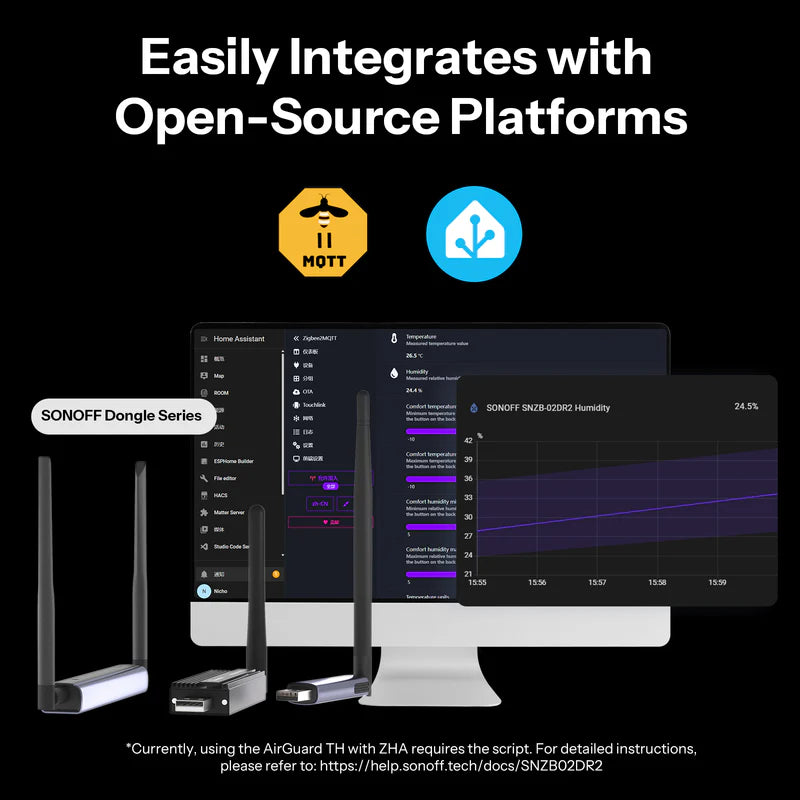 In Zigbee mode, links with SNZB-02/02P/02WD/02D/02LD devices to instantly display other sensor temperatures, allowing fast checks without opening your phone or entering the room.