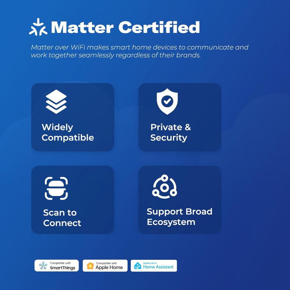 - Matter-Certified Home Assistant Integration: Seamlessly connects via Wi-Fi Matter to Home Assistant (using a compatible Matter controller and Thread Border Router), alongside Apple HomePod Mini, Google Home, or Echo devices—eliminating setup hassles for cross-platform routines. Note: Requires 2.4 GHz Wi-Fi and a Matter hub; some symbol placements may vary from non-US layouts.