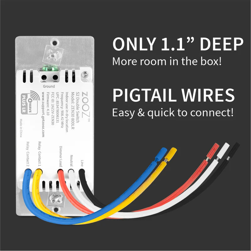 - DIMMER: double tap to full brightness, custom brightness level on, adjustable ramp rate and dimming speed, and more great features you've known Zooz for!*